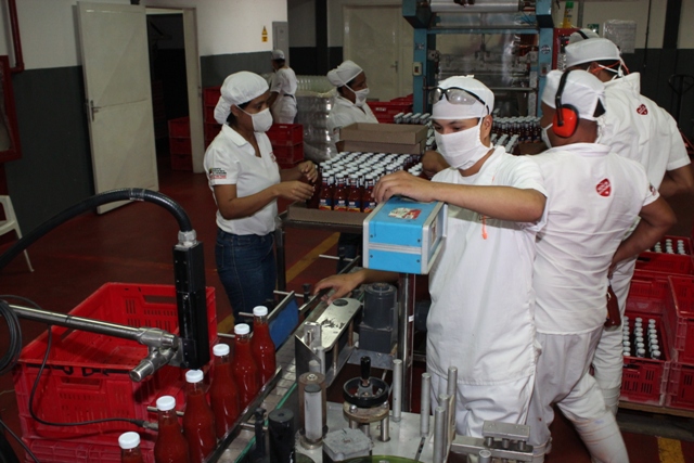 Lara, 19/10/2020.- Trabajadores de la planta Casquíbor de la empresa socialista Lácteos Los Andes, están comprometidos en seguir aumentando los niveles de producción y envasado de salsa de tomate Kétchup, para el beneficio de las familias venezolanas, en medio de la pandemia mundial de la Covid-19, se garantiza el derecho sagrado a la alimentación.